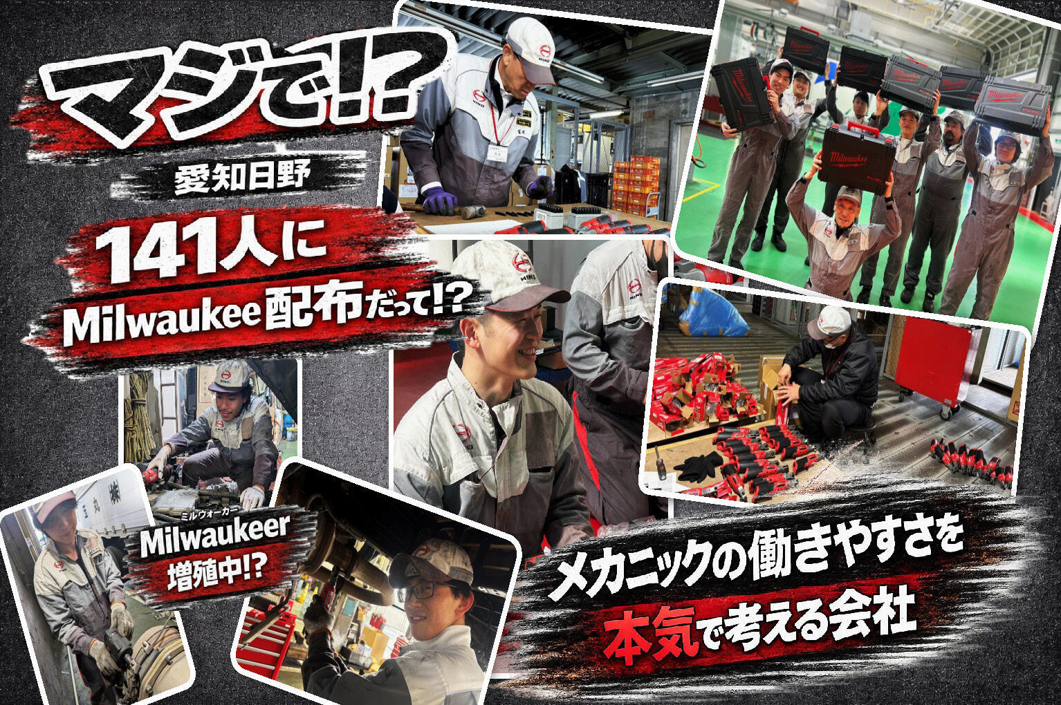 当社では、現場で活躍するメカニックの作業環境向上を目的に、Milwaukee製の電動インパクトおよび電動ラチェットを有資格者141名へ配布いたしました。 本取り組みにより、日々の業務における負担軽減と作業効率の向上を図るとともに、メカニック一人ひとりがより高いパフォーマンスを発揮できる環境づくりを進めております。 今後も当社は、メカニックの視点に立った取り組みを大切にし、現場を支える施策を積極的に推進してまいります。
