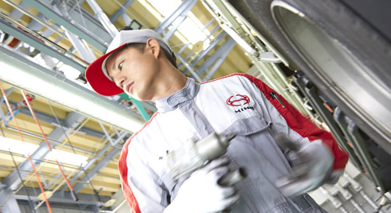 愛知日野は、20代・30代が活躍する場。年齢・経験に応じた充実した社内教育制度を整え、人材育成を行っています。